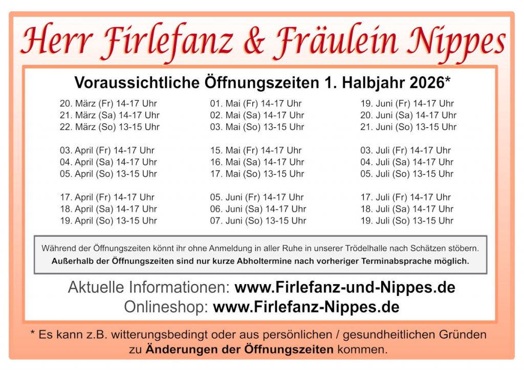 - per eMail an Peggy@Firlefanz-Nippes.de