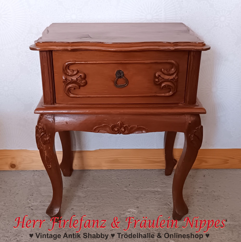 Kleiner antiker Beistellschrank mit Verzierungen und geschweiften Beinen – 100 €